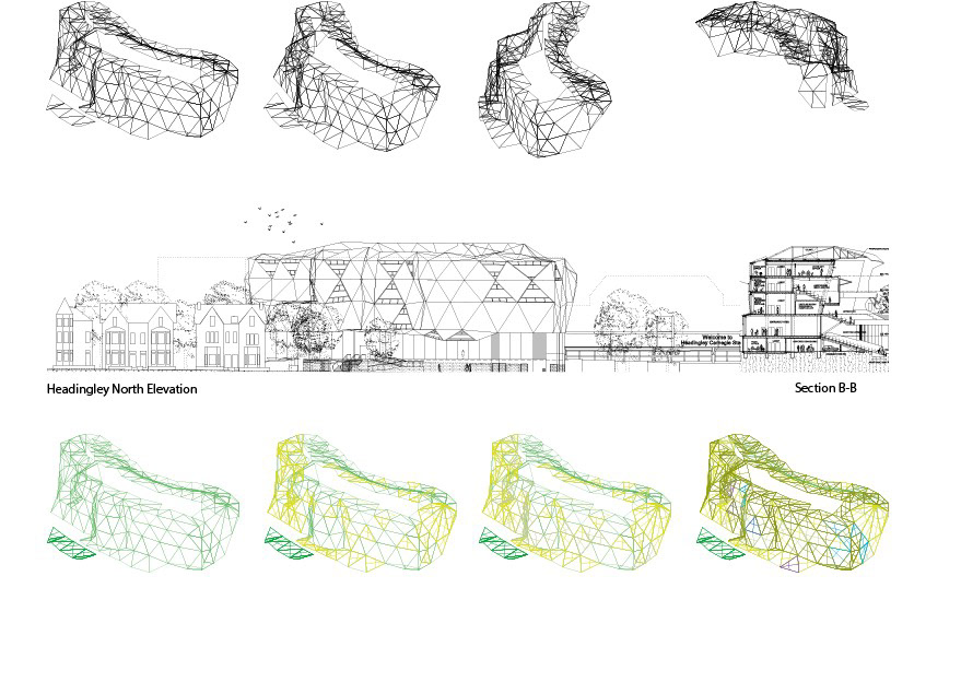Wireframe taken from Rhino 3d model and 2d elevations made in Microstation